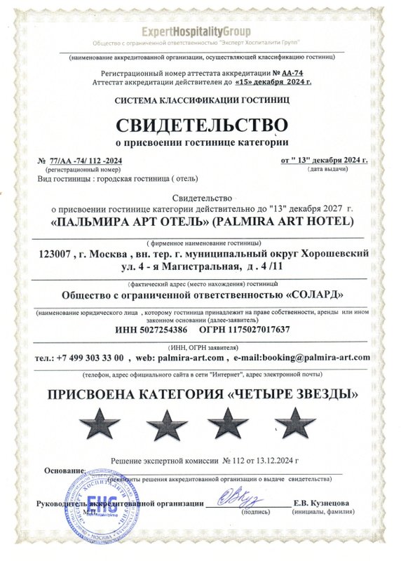 Отель Palmira Art ждет вас по адресу 4-я Магистральная улица, 4 ст11 и работает с Круглосуточно.